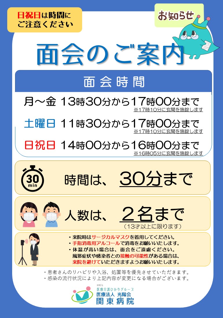 日祝日は面会時間にご注意ください